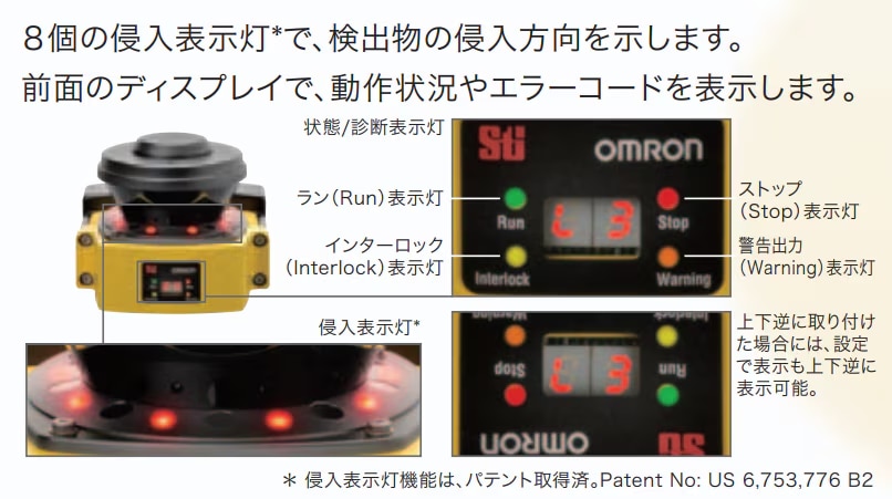 8個の侵入表示灯によって、検出物の侵入方向を表示します。