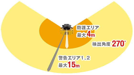 コンパクトサイズで防護エリア4m*、検出角度270°を実現します。