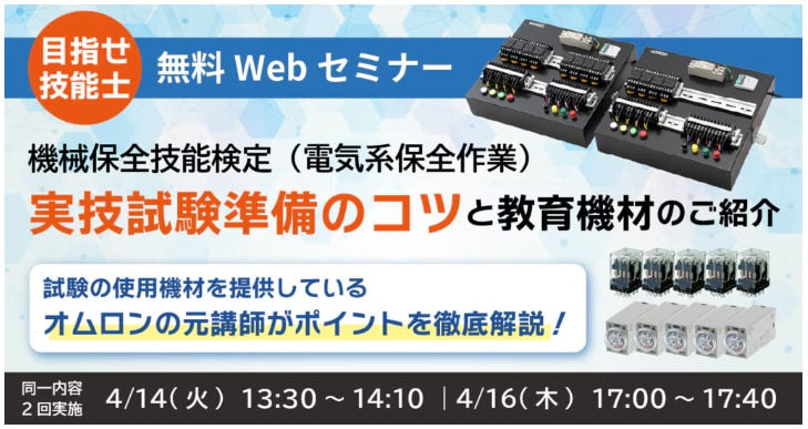 《無料Webセミナー開催》 『機械保全技能検定(電気系保全作業)実技試験準備のコツと教育機材のご紹介』 2026年4月14日(火)/4月16日(木) ≫≫ 詳しくはこちら |