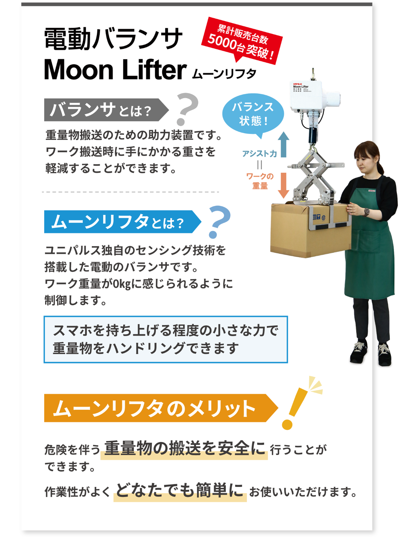 ユニパルス株式会社の電動バランサ「ムーンリフタ」を使用いただくことで、これらの課題を簡単に解決することができます!!