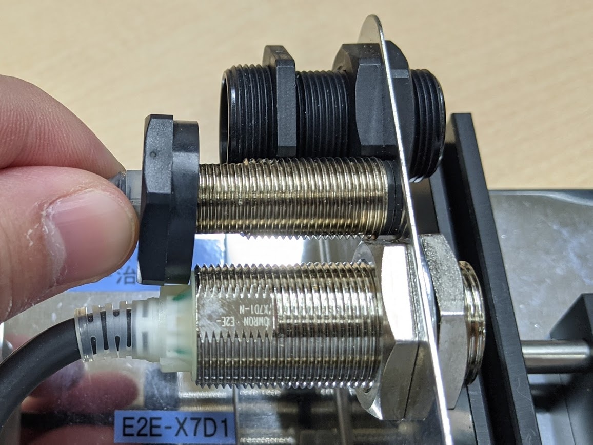 実は、この中に1サイズ小さい近接センサが取り付けられていたんです!!