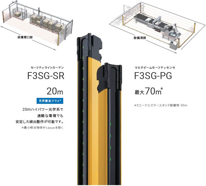 F3SG-SRという機種なら20mもの長距離検出が可能です。