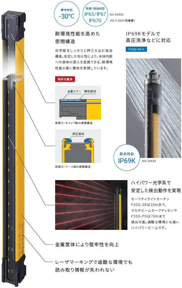F3SGはIP67を持ち周囲温度-30℃まで対応しています。